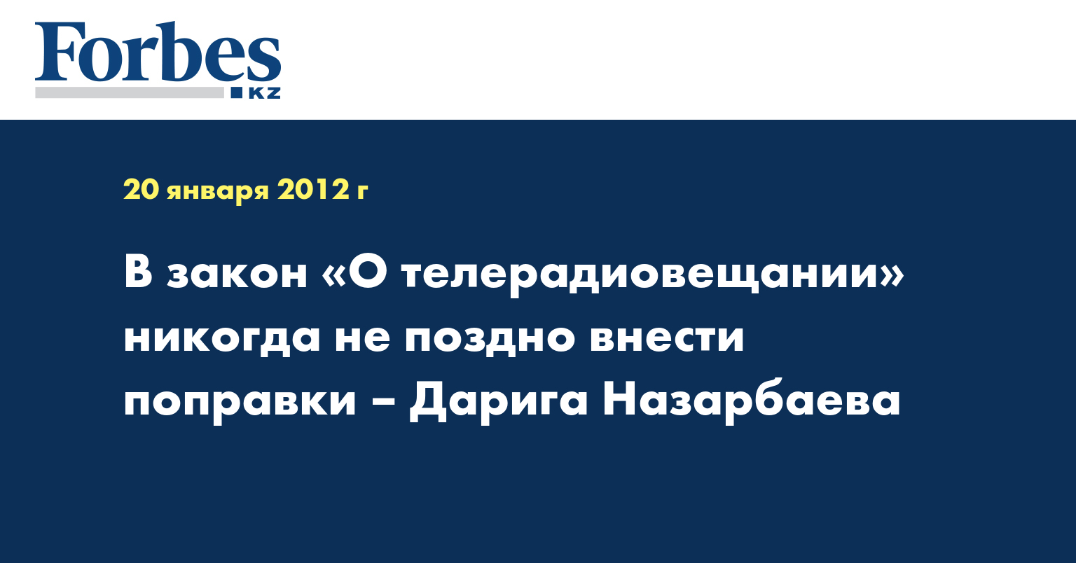 В закон «О телерадиовещании», наделавший много шума среди журналистского сообщества, но подписанный президентом Казахстана, никогда не поздно внести поправки, считает депутат мажилиса Дарига Назарбаева, передает ИА Новости-Казахстан.