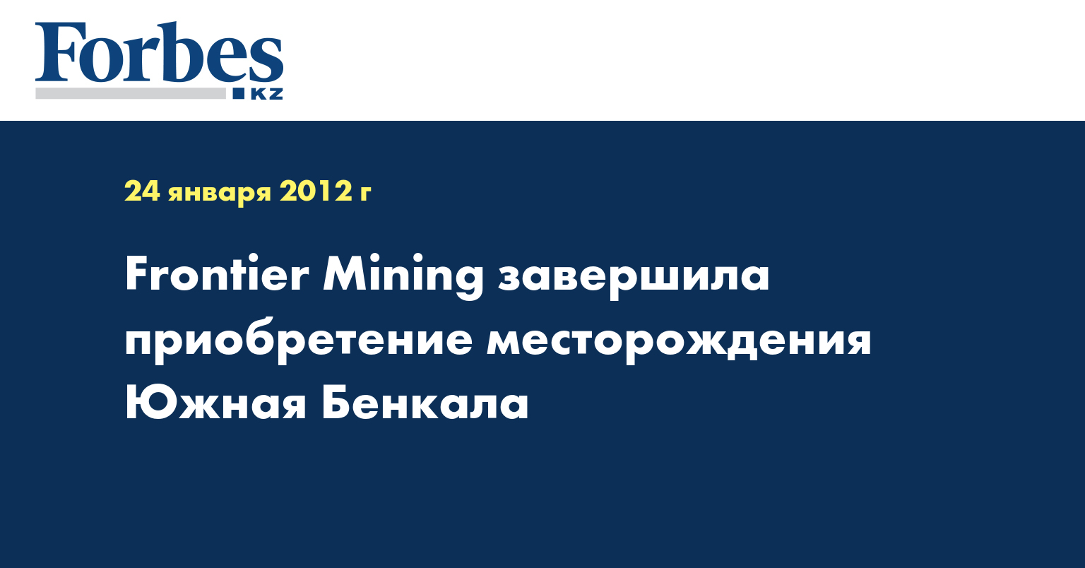 Frontier Mining Ltd. завершила сделку по приобретению месторождения Южная Бенкала, которая началась 9 мая 2011 года, указывается в сообщении компании, передает КазТАГ.