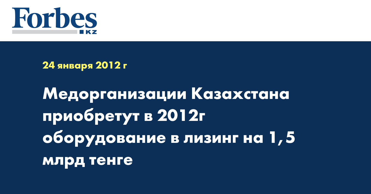 Медицинские организации Казахстана в 2012 году приобретут оборудование в лизинг на сумму 1,5 миллиарда тенге, сообщает ИА Новости-Казахстан со ссылкой на пресс-службу республиканского центра развития здравоохранения.