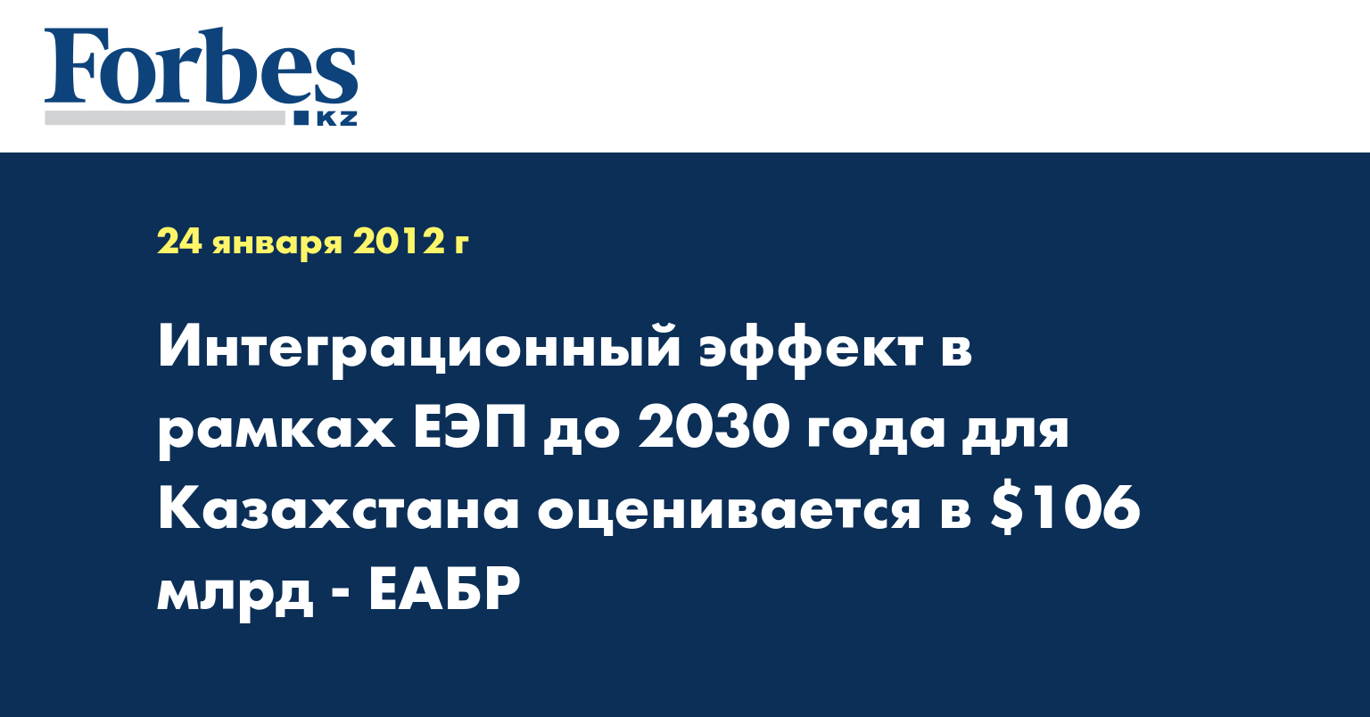 Суммарный эффект от развития интеграционных связей в рамках Единого экономического пространства (ЕЭП) в 2011-2030 годах для Казахстана оценивается в $106 млрд, считают эксперты Евразийского банка развития (ЕАБР), - передает КазТАГ.