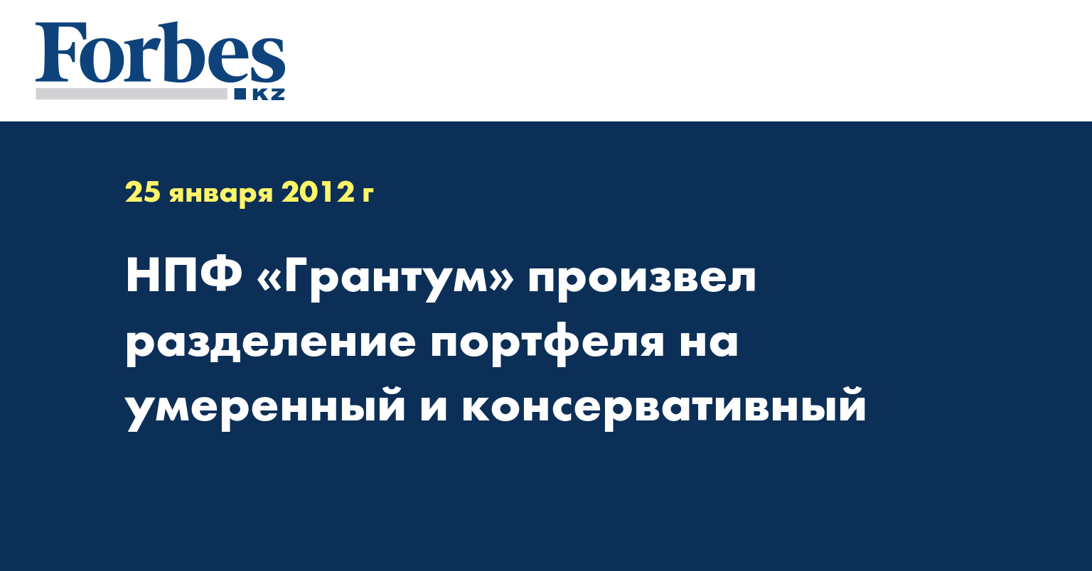 Накопительный пенсионный фонд (НПФ) «Грантум» с 1 января 2012 года, согласно требованиям законодательства, произвел разделение инвестиционного портфеля на умеренный и консервативный, сообщает ИА Новости-Казахстан со ссылкой на пресс-службу фонда.