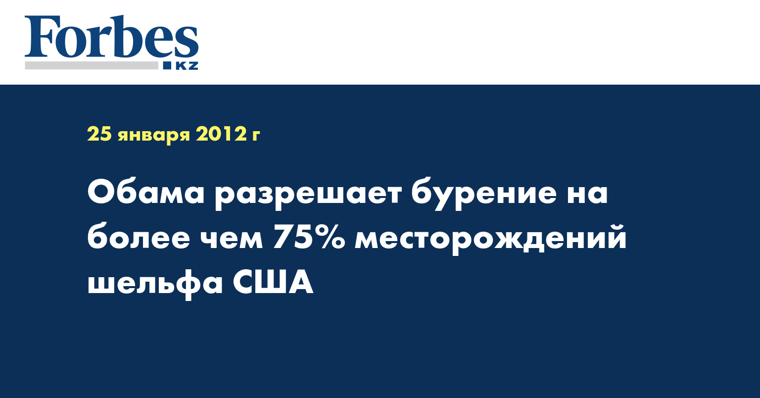 Президент США Барак Обама распорядился разрешить бурение на более чем 75% нефтяных и газовых месторождений на американском шельфе, передает ИА Новости-Казахстан.