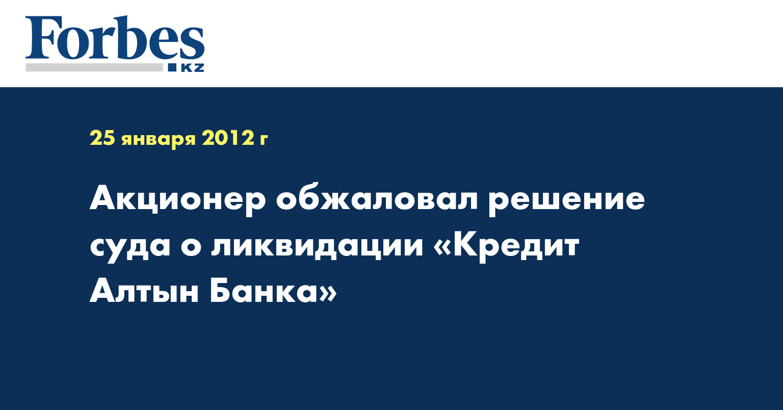 «6 января 2012 года решение Специализированного межрайонного экономического суда г. Алматы от 22 декабря 2011 года о принудительной ликвидации АО "Кредит Алтын Банк" было обжаловано представителем Асаубаева Б.К. по доверенности - Суворовой Н.Е. - в апелляционную коллегию по гражданским делам Алматинского городского суда», - отмечается в сообщении регулятора.