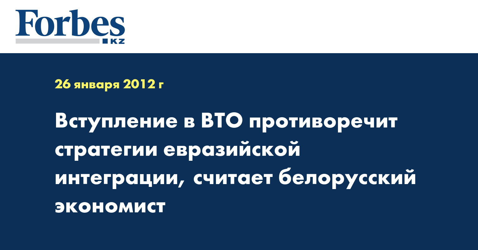 Вступление во Всемирную торговую организацию (ВТО) противоречит стратегии евразийской интеграции, считает белорусский экономист Александр Синкевич, передает КазТАГ.
