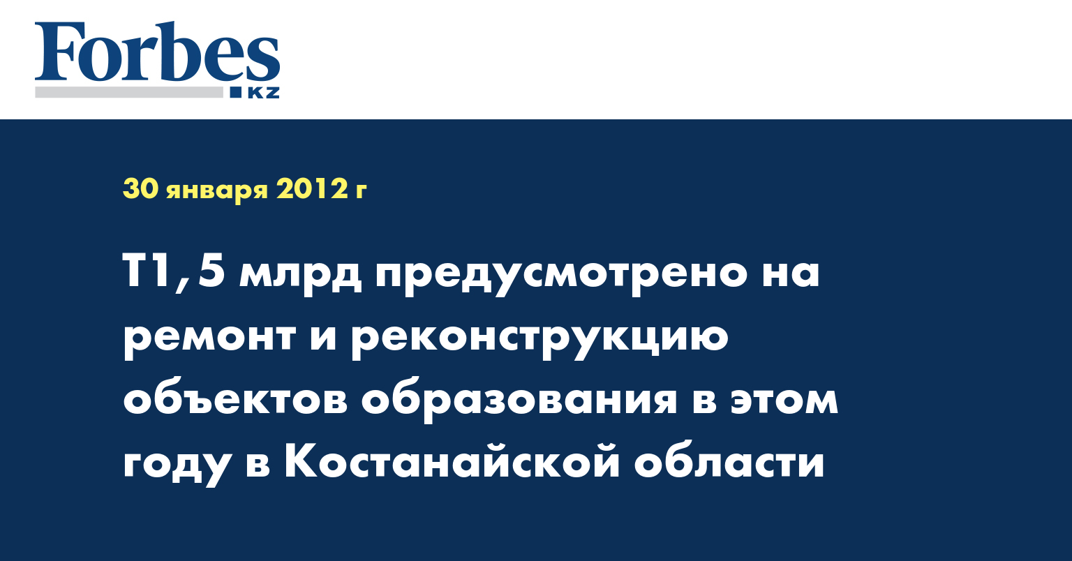 В Костанайской области на ремонт и реконструкцию объектов образования в 2012 году предусмотрено Т1,5 млрд, сообщил начальник управления образования акимата Костанайской области Марат Жундубаев, передает КазТАГ.