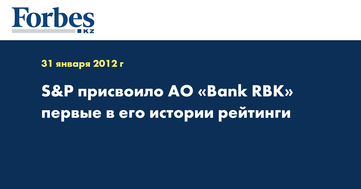 Международное рейтинговое агентство Standard & Poor’s присвоило казахстанскому АО «Bank RBK» долгосрочный и краткосрочный кредитные рейтинги контрагента «В-/С» и рейтинг по национальной шкале «kzBB-». Прогноз изменения рейтингов – «Стабильный», сообщает пресс-служба банка.