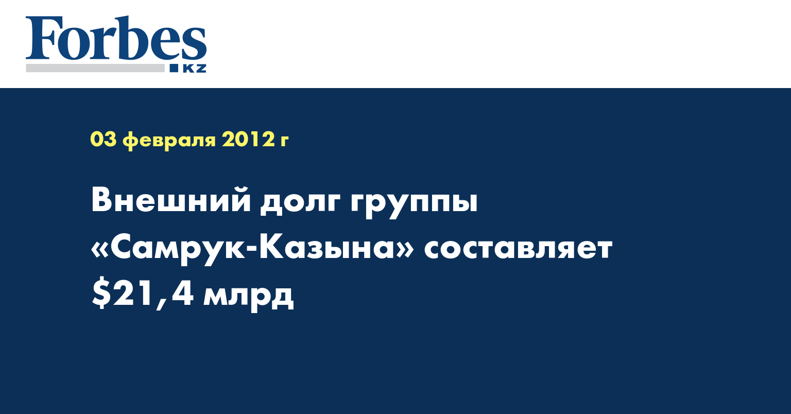 Внешний долг компаний, входящих в группу фонда "Самрук-Казахстан", на 1 октября прошлого года составил 21,4 миллиарда долларов, сообщил в пятницу управляющий директор ФНБ "Самрук - Казына" Нурлан Рахметов, передает ИА Новости-Казахстан.