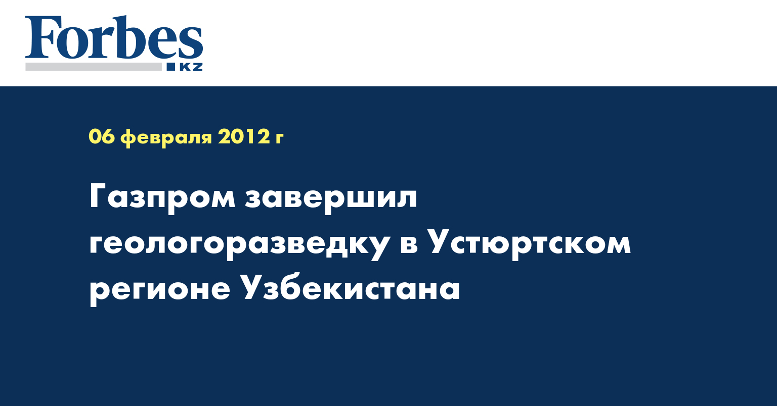 Российское ОАО «Газпром» завершило выполнение геологоразведочных работ в Устюртском регионе Узбекистана, сообщила пресс-служба компании, передает КазТАГ.