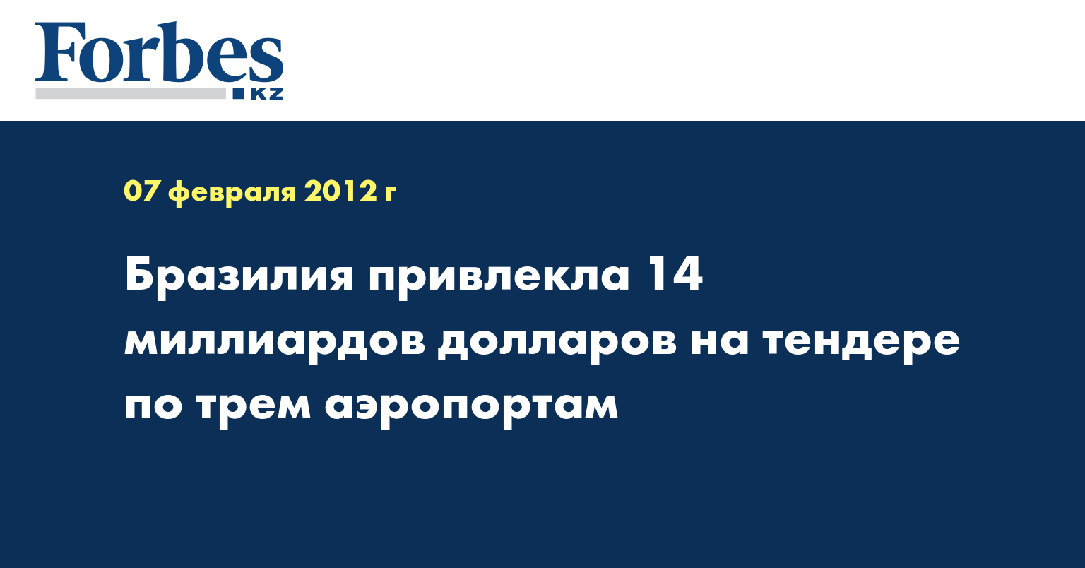 Бразилия привлекла 24,5 миллиарда реалов (около 14 миллиардов долларов) в ходе продажи операционных лицензий на три государственных аэропорта, сообщает Lenta.Ru со ссылкой на Bloomberg. Одна из задач, поставленных перед инвесторами - модернизация аэропортов к Чемпионату мира по футболу, который пройдет в стране в 2014 году.