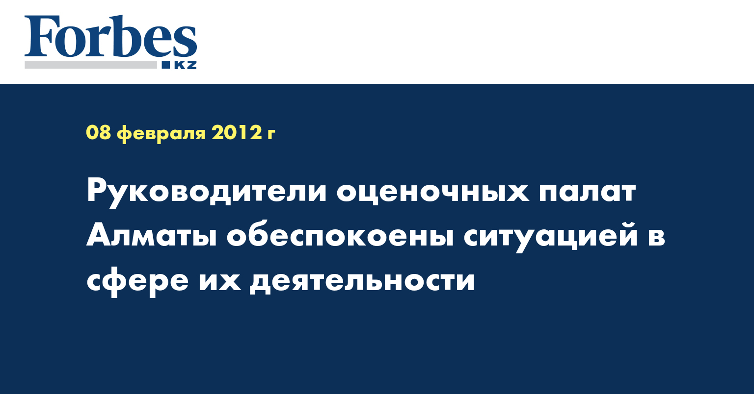 Руководители трех оценочных палат Алматы обеспокоены ситуацией в сфере их деятельности, сложившейся в связи с принятием нового закона РК «Об оценочной деятельности в РК», а также позицией госорганов, курирующих эту деятельность, сообщает КазТАГ.