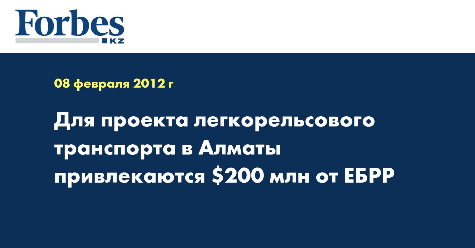 На реализацию проекта строительства инфраструктуры легкого рельсового транспорта (ЛРТ) в Алматы привлекаются средства Европейского банка реконструкции и развития (ЕБРР) в объеме $200 млн, сообщил аким города Ахметжан Есимов, передает КазТАГ.