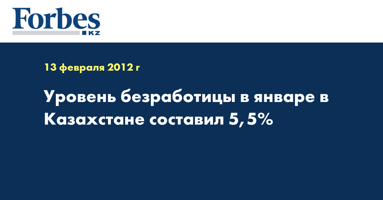 Уровень безработицы в Казахстане в январе текущего года составил 5,5%, сообщает ИА Новости-Казахстан со ссылкой на агентство республики по статистике.