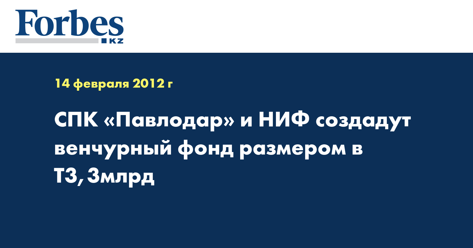 Как рассказали в СПК, общий планируемый размер капитализации венчурного фонда составит Т3,3 млрд. Т1 млрд поступит от АО «НК «СПК «Павлодар», Т1,3 млрд от АО «Национальный инновационный фонд».