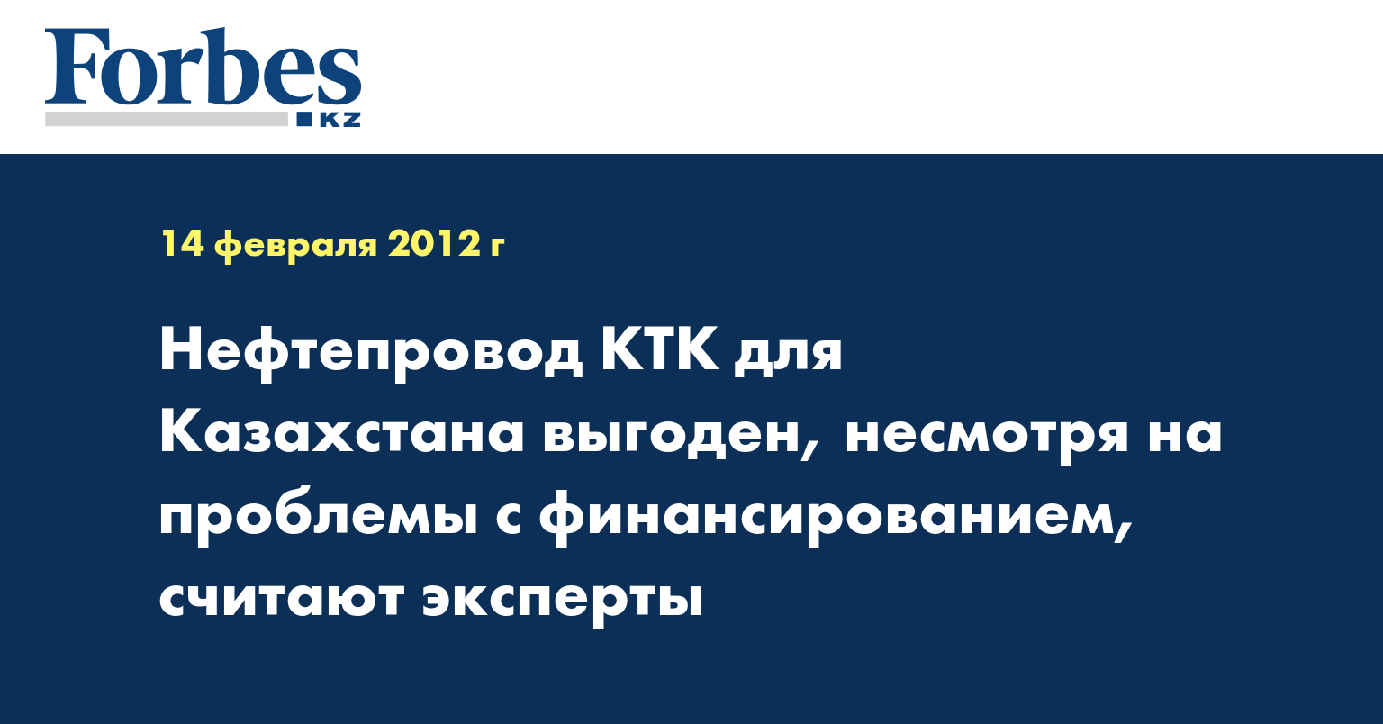 Несмотря на проблемы с финансированием, Казахстан будет по-прежнему поддерживать проект расширения системы Каспийского трубопроводного консорциума (КТК), поскольку он выгоден и интересен, заявил агентству КазТАГ казахстанский политолог, директор «Группы оценки рисков» Досым Сатпаев, комментируя появившееся в российской газете «Ведомости» сообщение о возможном привлечении КТК кредита в $1,5-2 млрд для финансирования расширения трубы.
