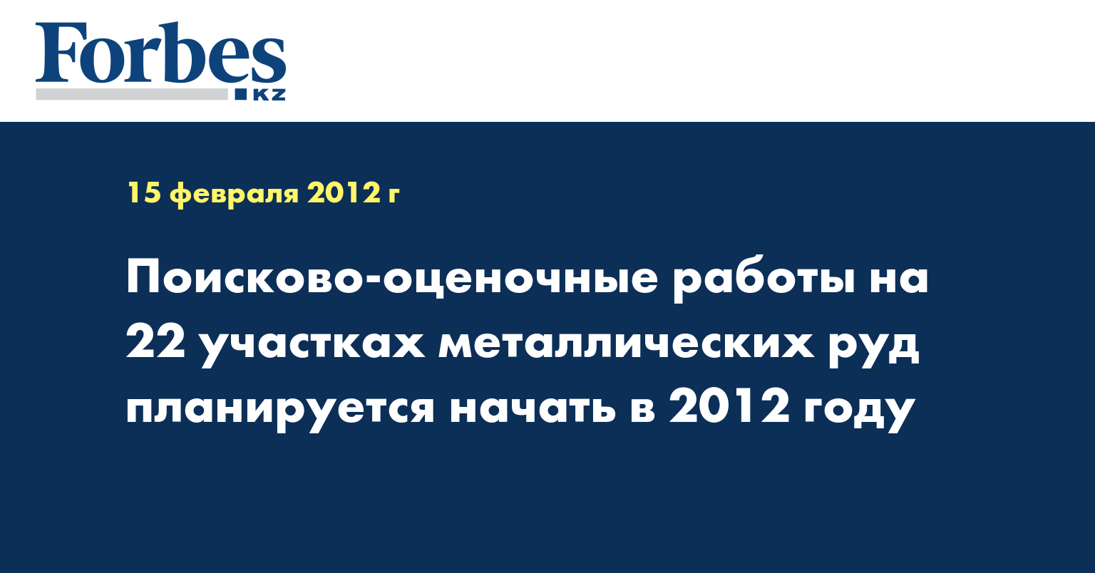 Поисково-оценочные работы на 22 участках металлических руд планируется начать в 2012 году, указывается в докладе министра индустрии и новых технологий РК Асета Исекешева о реализации госпрограммы форсированного индустриально-инновационного развития (ГПФИИР), передает КазТАГ.