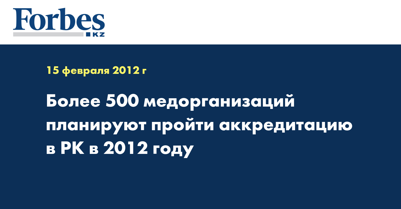 «Прогнозное количество медицинских организаций, планирующих пройти аккредитацию в республике в 2012 году, превышает 500», - говорится в сообщении РЦРЗ, распространенном в среду.