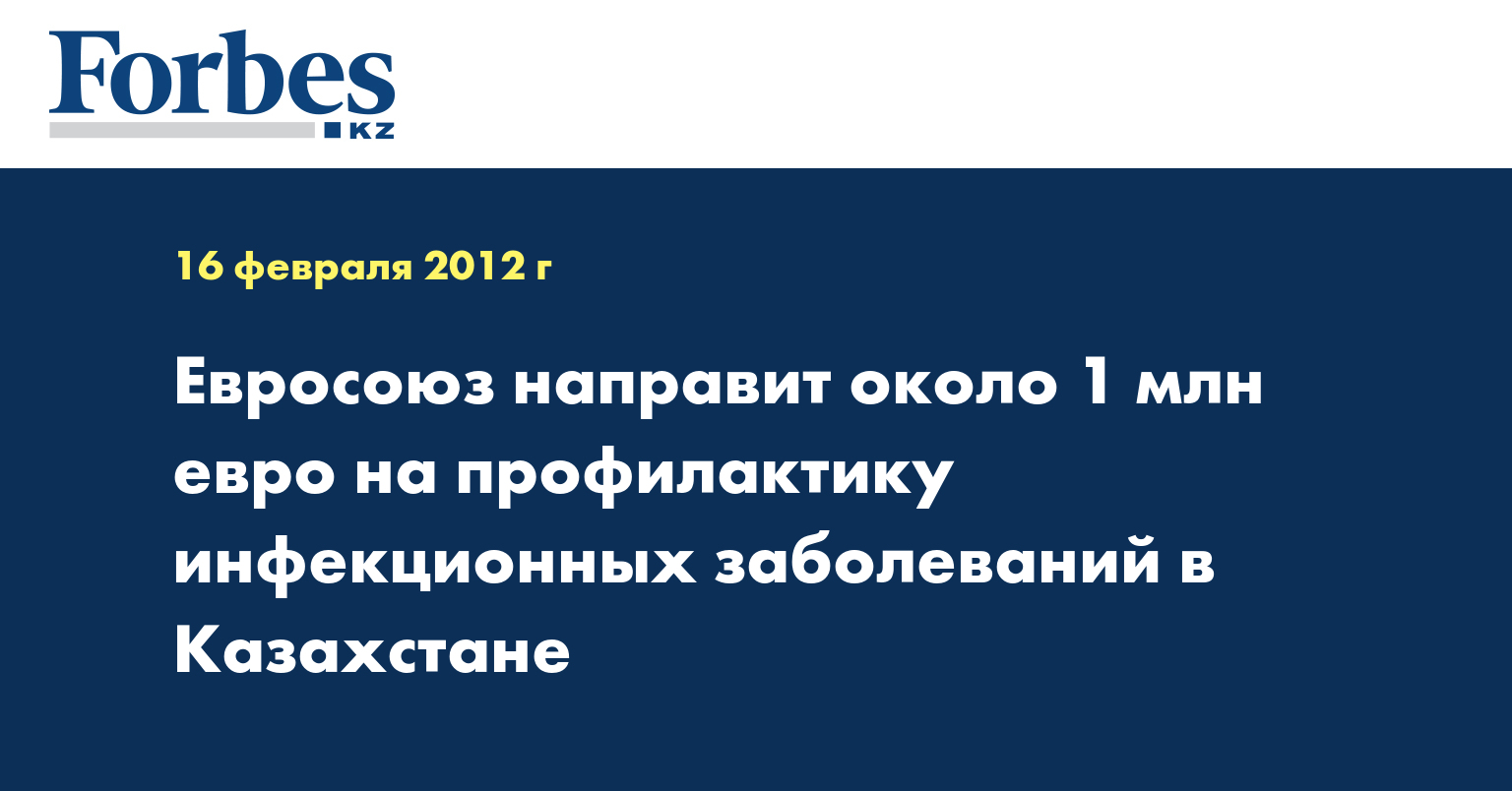 «Реализацией проекта будет заниматься европейская сеть агентств, реализующих проекты по развитию (EUNIDA) в тесном сотрудничестве с министерством здравоохранения Казахстана и санэпидстанцией. Продолжительность работы проекта составляет 16 месяцев. Евросоюзом было выделено 998 650 евро для финансирования данного проекта», - говорится в сообщении представительства в среду.