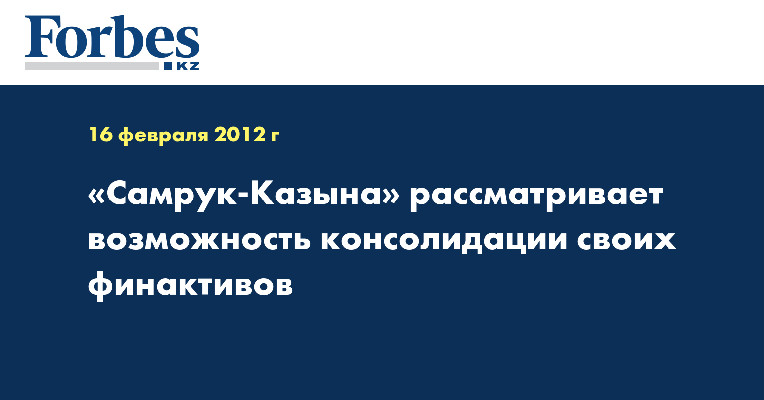 Фонд национального благосостояния Казахстана «Самрук-Казына» рассматривает возможность консолидации своих финансовых активов, сообщил глава компании Умирзак Шукеев в интервью газете «Коммерсант», передает ИА Новости-Казахстан.
