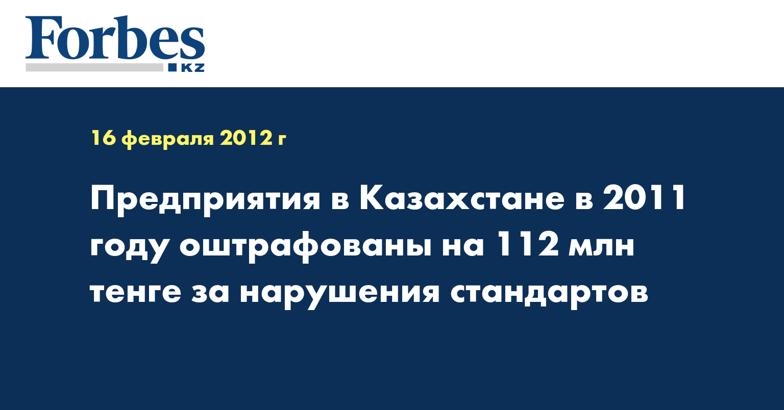 «Всего за 2011 год наложено 3125 штрафов на сумму свыше 112 миллионов тенге», - сказал Сатбаев на пресс-конференции, передает ИА Новости-Казахстан. По его словам, всего за год подразделениями комитета было проведено 5114 проверок, из которых 3137 дали «положительный результат», то есть выявили нарушения.