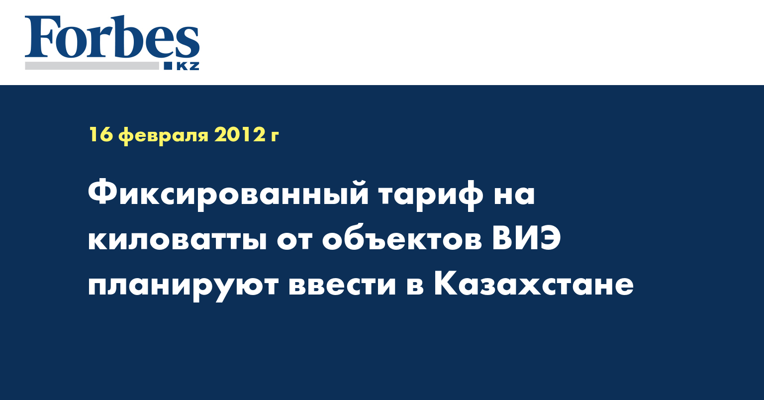 «Основная концепция нашего законопроекта основана на введении фиксированного тарифа. Это фиксированная величина тарифа на электрическую энергию, производимую от объектов возобновляемых источников энергии (ВИЭ). Введение фиксированных тарифов будет гарантией возврата вложенных средств, может внести ясность по величине тарифов от объектов ВИЭ», - сказал Б. Джаксалиев на презентации проекта закона «О внесении изменений и дополнений в некоторые законодательные акты РК по вопросам поддержки использования возобновляемых источников энергии» в четверг.