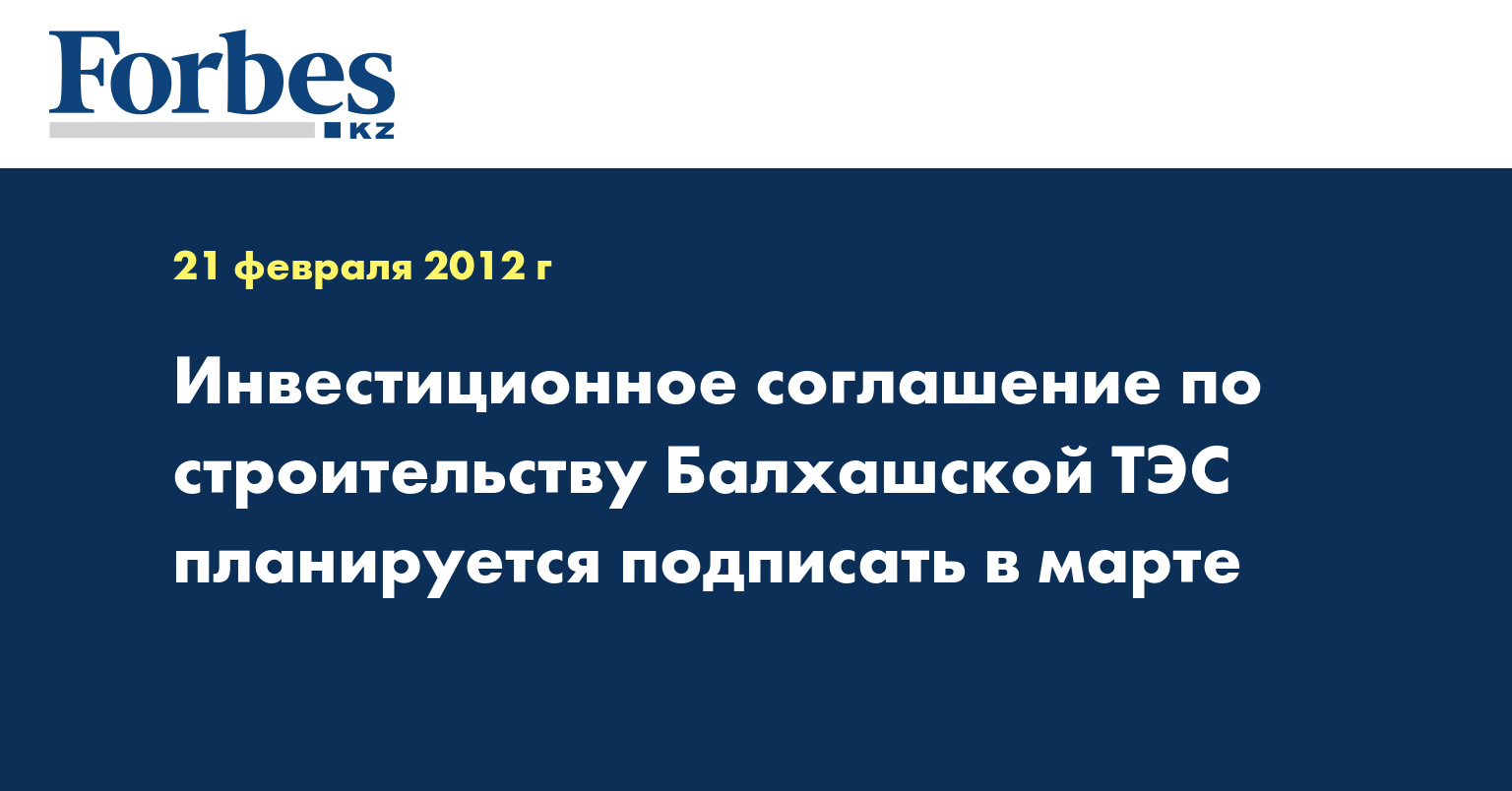 Инвестиционное соглашение строительства Балхашской ТЭС планируется подписать в марте, сообщил министр индустрии и новых технологий РК Асет Исекешев, передает КазТАГ.