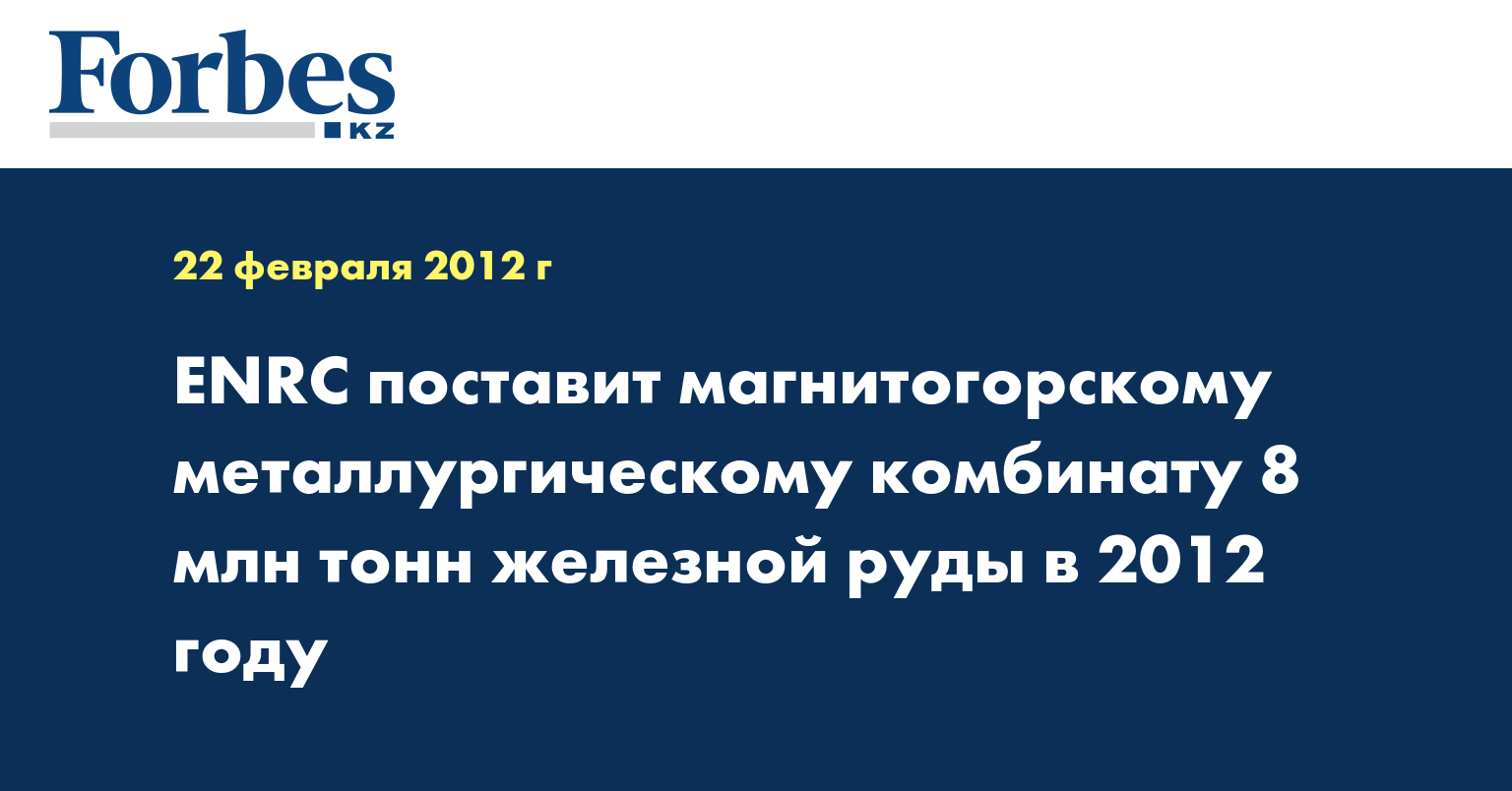 По информации компании, ENRC поставит ММК минимум 8 млн тонн сырья в 2012 году.