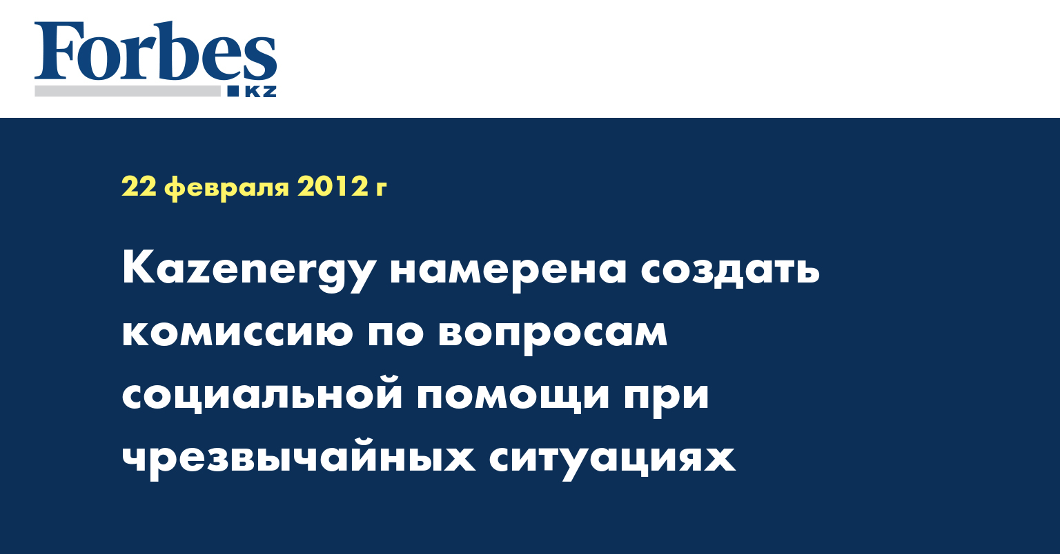 Казахстанская ассоциация организаций нефтегазового и энергетического комплекса Kazenergy намерена создать комиссию по вопросам социальной помощи при чрезвычайных ситуациях, указывается в сообщении организации, передает КазТАГ.