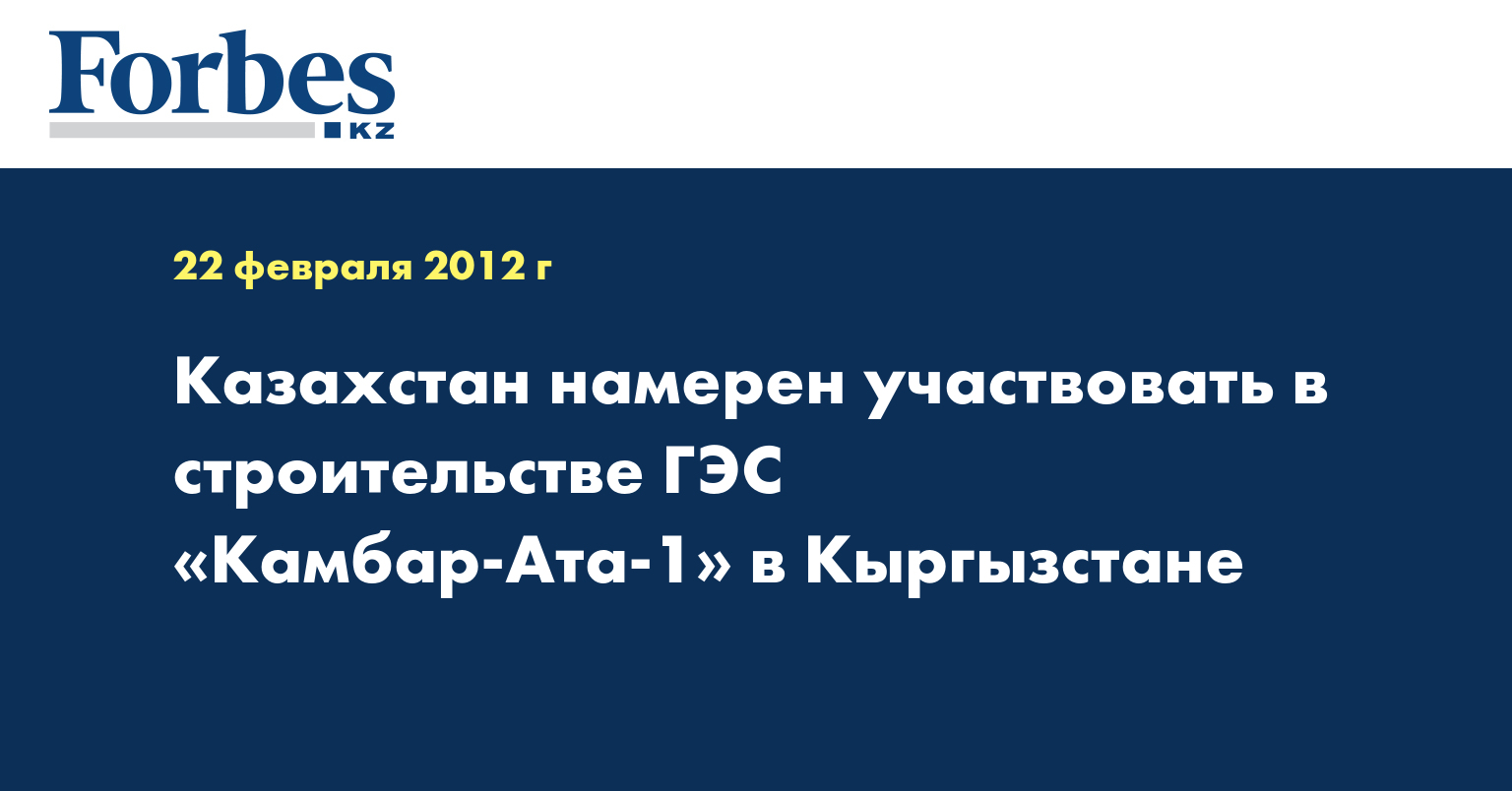 Напомним, в октябре 2011 года российская сторона подтвердила намерение инвестировать в строительство Камбаратинской ГЭС-1 и каскада ГЭС на реке Нарын более $2,1 млрд. Проектируемая мощность станции - 1900 МВт. Выработка электроэнергии – 5 млрд кВт/ч.