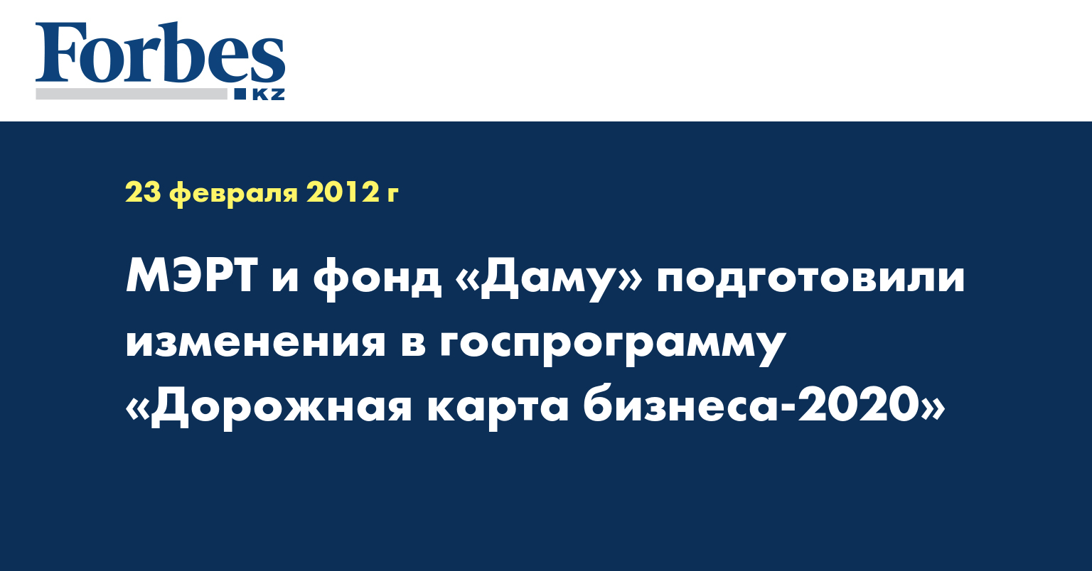 Министерство экономического развития и торговли (МЭРТ) РК и фонд развития предпринимательства (ФРП) «Даму» подготовили изменения в госпрограмму «Дорожная карта бизнеса-2020» в части совершенствования механизмов и условий программы, указывается в сообщении МЭРТ.