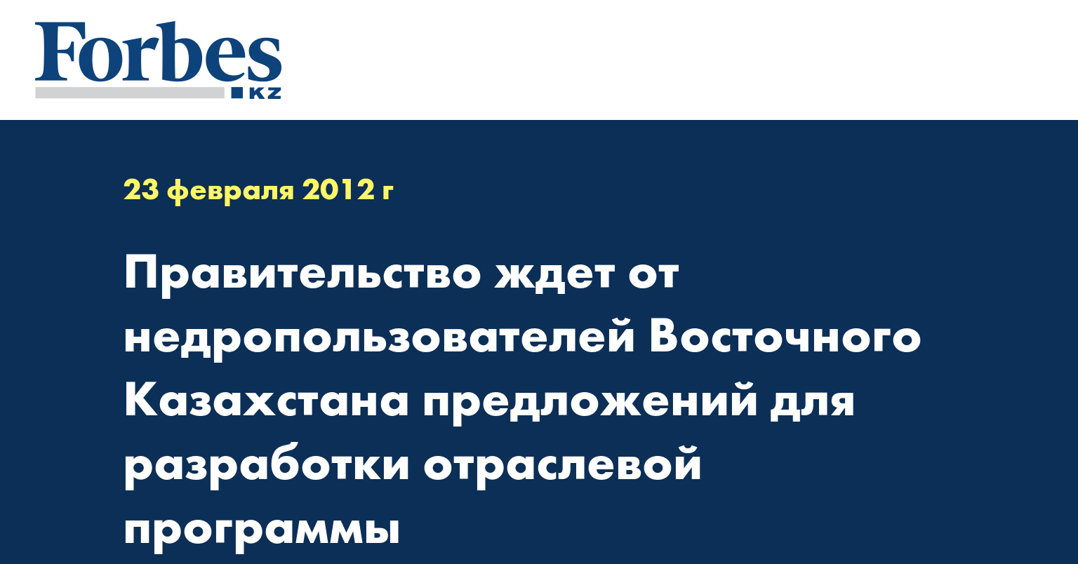 Как отметил министр, правительством «должна быть разработана специальная программа по недропользованию ВКО, которая войдет в республиканскую». Программой предусматривается усиление госконтроля за недропользованием, соблюдением экологии, и вместе с тем упрощение процедурных барьеров.