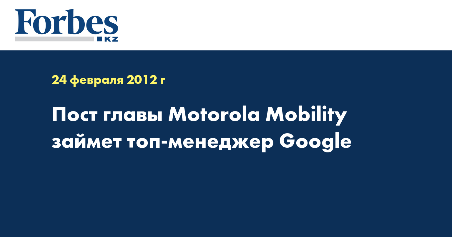 Google назначит на пост главы Motorola Mobility своего высокопоставленного сотрудника Денниса Вудсайда (Dennis Woodside), пишет Bloomberg со ссылкой на анонимные источники, сообщает Lenta.Ru.
