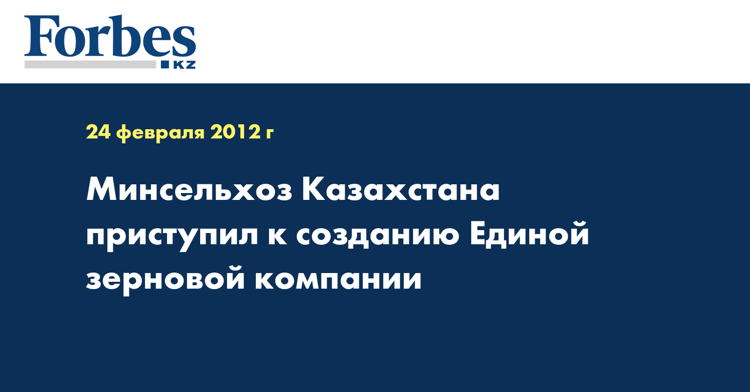 «В настоящее время уже начата работа по созданию на условиях государственно-частного партнерства Единой зерновой компании, которая будет осуществлять функции крупного зернового трейдера - закуп зерна у Продкорпорации и на свободном рынке; хранение крупных партий зерна; реализация закупленных объемов зерна на экспорт в благоприятные периоды повышения цен на зерно в целях закрепления бренда «казахстанское зерно» на мировых рынках сбыта», - говорится в распространенном перед совещанием в Минсельхозе пресс-релизе.