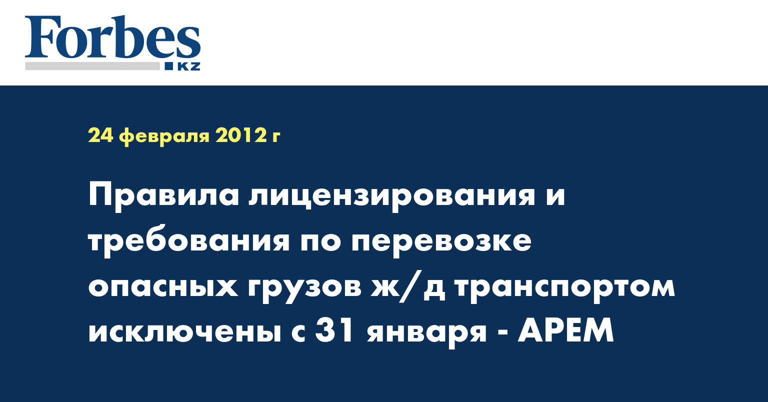 С 31 января 2012 года исключены правила лицензирования и квалификационные требования к деятельности по перевозке опасных грузов железнодорожным транспортом, сообщила пресс-служба агентства РК по регулированию естественных монополий (АРЕМ), передает КазТАГ.