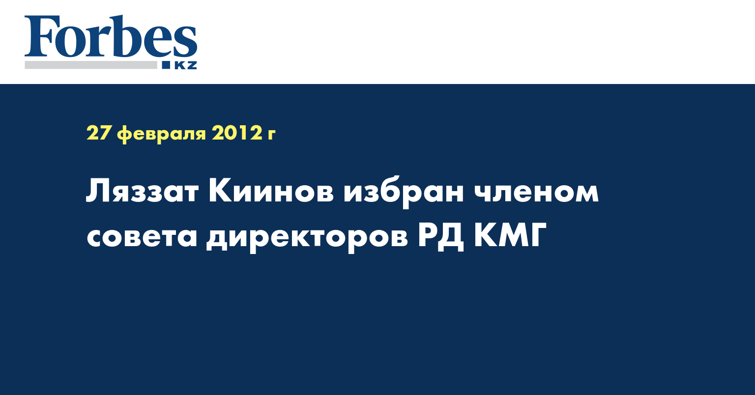 «РД КМГ 27 февраля провело внеочередное общее собрание акционеров, на котором были досрочно прекращены полномочия члена совета директоров Аскара Балжанова. Новым членом совета директоров избран Ляззат Киинов на срок полномочий совета директоров компании в целом», - отмечается в пресс-релизе, распространенном в понедельник.