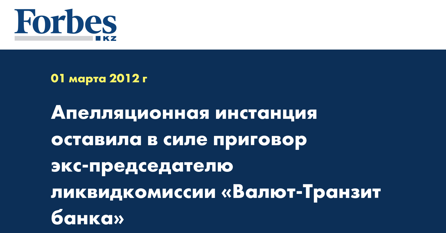 Напомним, решение о принудительной ликвидации АО «Валют-Транзит Банк» межрайонный экономический суд Караганды вынес в феврале 2007 года. Ликвидация началась в марте 2007 года. На момент банкротства банк задолжал физическим и юридическим лицам около Т50 млрд, в том числе предстоит вернуть вкладчикам около Т8 млрд. В настоящее время производятся расчеты по третьей очереди с фондом гарантирования депозитов. К выплате долгов вкладчикам, которые находятся в четвертой очереди, ликвидкомиссия еще не приступала.