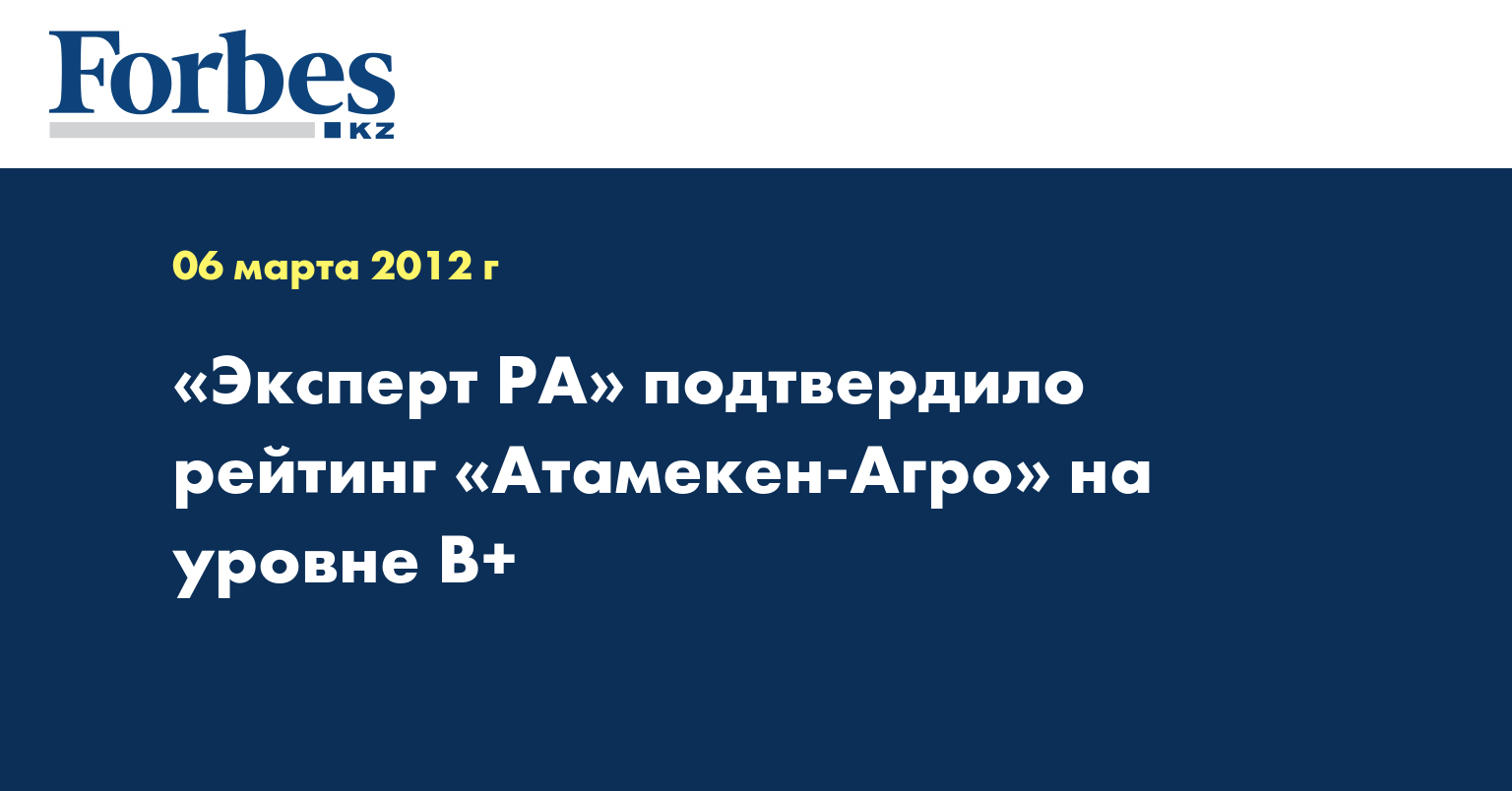 «Эксперт РА Казахстан» подтвердило рейтинг АО «Атамекен-Агро» на уровне B+ и рейтинг надежности первого выпуска облигаций на уровне В+, указывается в сообщении рейтингового агентства, передает КазТАГ.