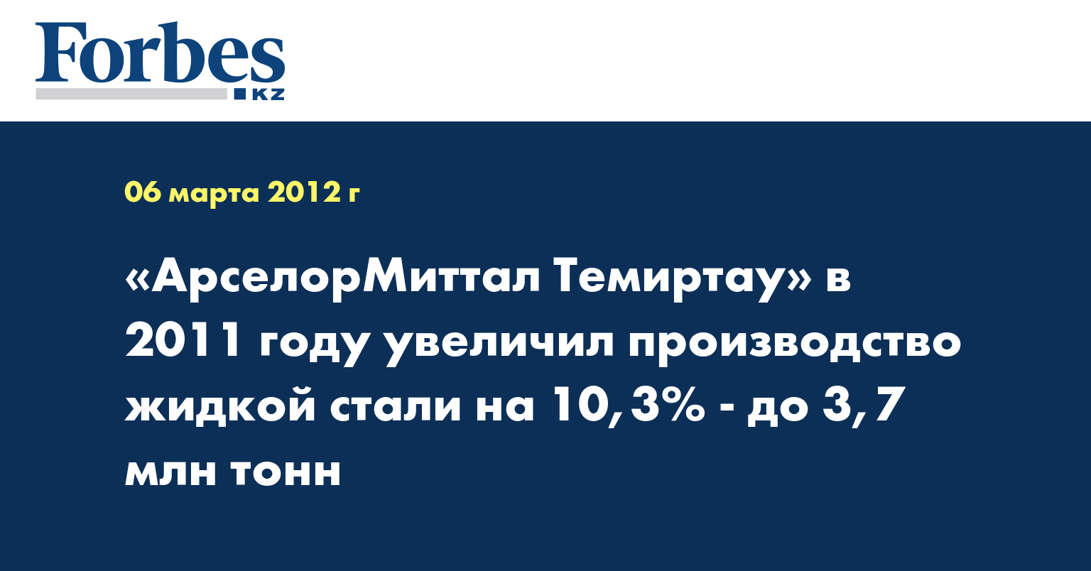 АО «АрселорМиттал Темиртау» в январе-декабре 2011 года произвело 3,684 миллиона тонн жидкой стали, что на 10,3% больше, чем в 2010 году, сообщила пресс-служба компании.