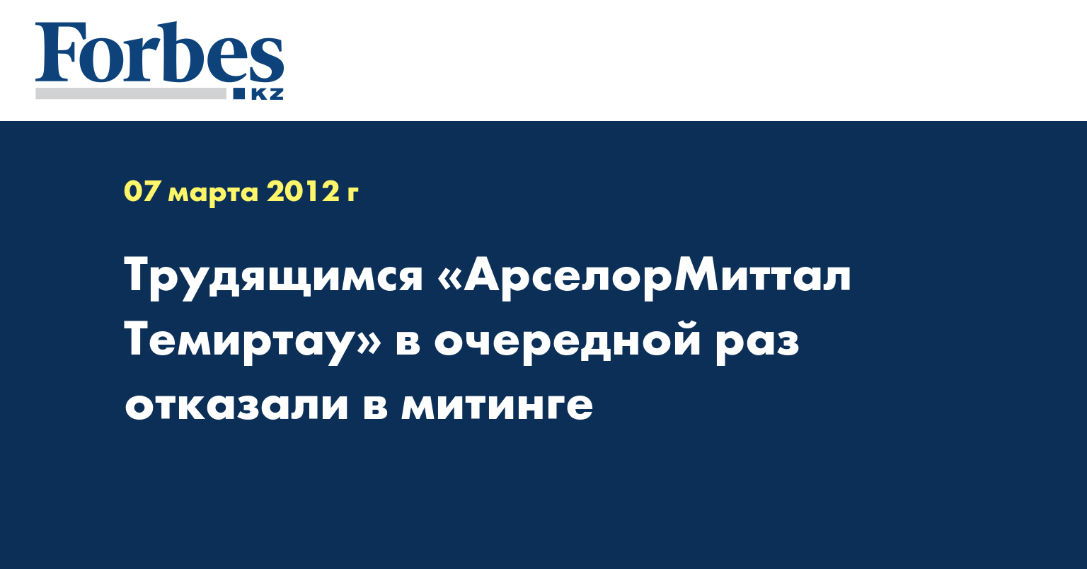 «Вместе с профсоюзом угольщиков «Коргау» мы направили заявку в акимат Темиртау о проведении митинга трудящихся АО «АрселорМиттал Темиртау» 10 марта. Цель одна – добиться выполнения требования трудового коллектива о повышении заработной платы. Митинг планировалось провести перед зданием заводоуправления АО «АрселорМиттал Темиртау». Но опять получили отказ. Власти ссылаются на отсутствие разрешения от землепользователя, то есть компании. Нам предлагают провести митинг в парке в старой части города, но мы считаем это место не подходящим», - сказали в профсоюзе «Жактау» в среду.