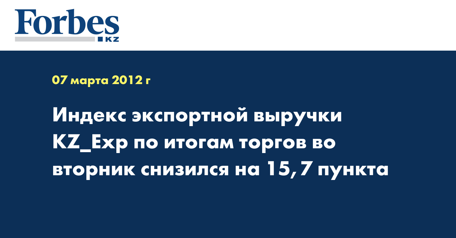 Индекс экспортной выручки по основным экспортным товарам KZ_Exp по итогам торгов во вторник составил 1029,21 пункта, КазТАГ.