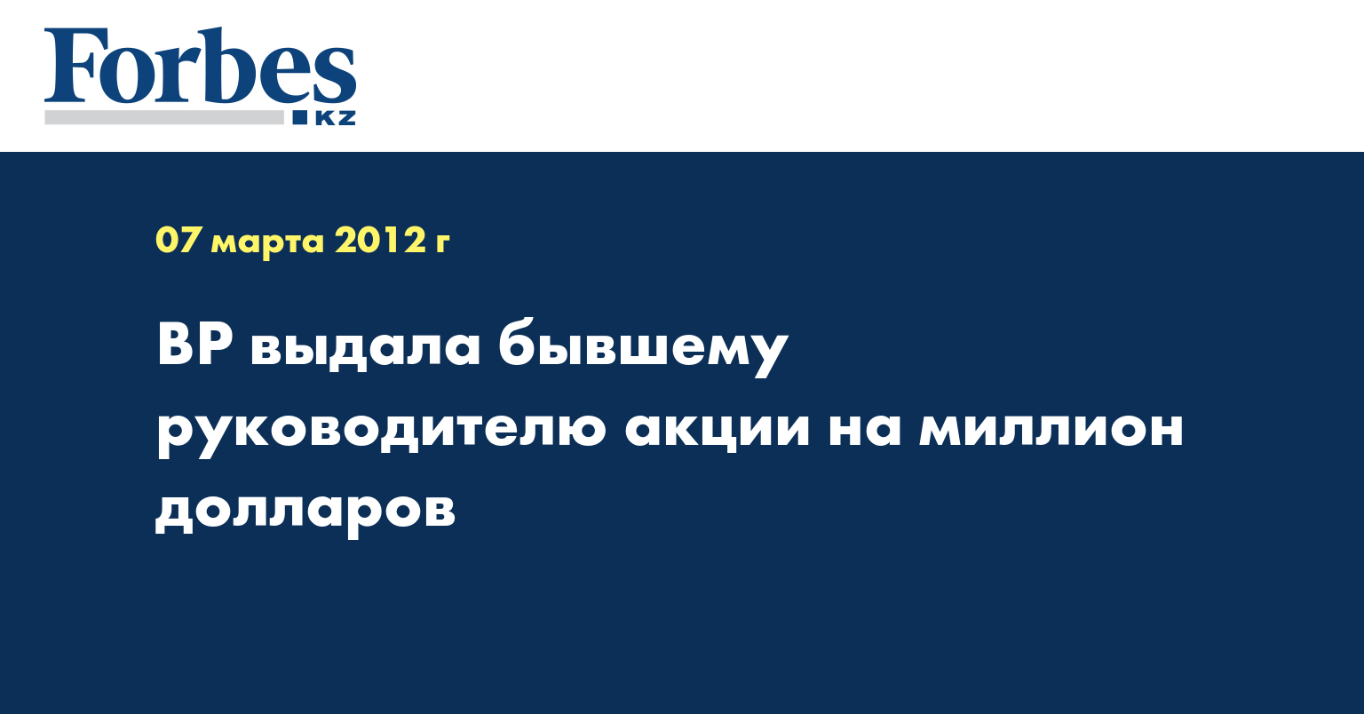 Нефтегазовая компания BP выдала своему бывшему исполнительному директору Тони Хейворду акции, общая стоимость которых оценивается более чем в 700 тысяч фунтов стерлингов (1,11 миллиона долларов). Об этом свидетельствует отчет BP о выплатах руководству по итогам 2011 года, опубликованный 6 марта, сообщает Lenta.Ru.