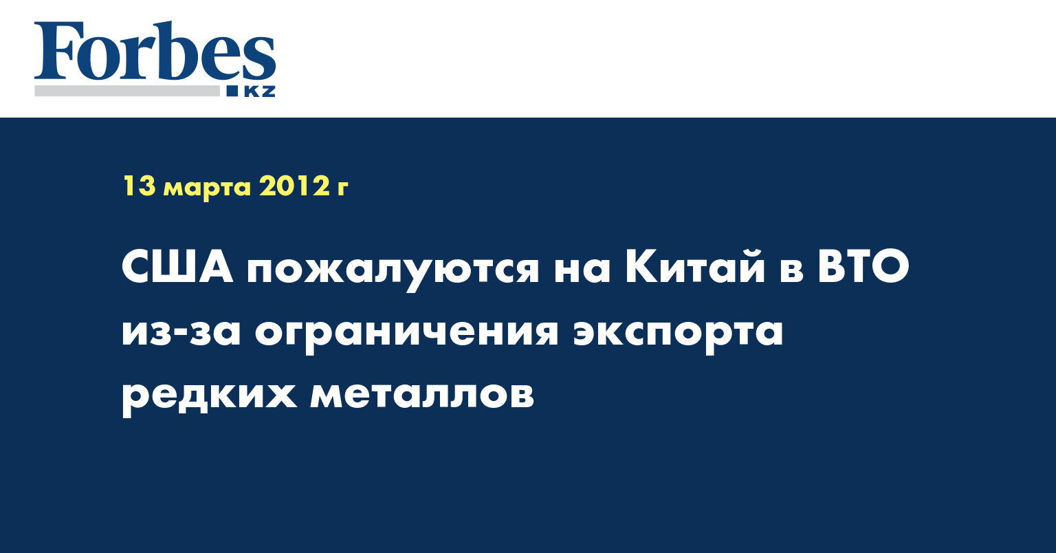 США совместно с Евросоюзом и Японией подадут во Всемирную торговую организацию (ВТО) иск против Китая, вызванный нежеланием Пекина экспортировать достаточное количество редкоземельных металлов. Как сообщает Associated Press со ссылкой на источник в администрации Барака Обамы, о соответствующем шаге президент США официально объявит днем 13 марта, передает Lenta.Ru.