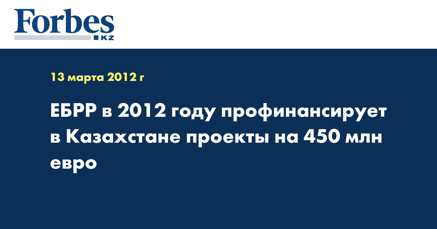 В 2012 году Европейский банк реконструкции и развития (ЕБРР) профинансирует в Казахстане проекты на 450 млн евро, сообщила глава представительства ЕБРР в Астане Анар Омарова.