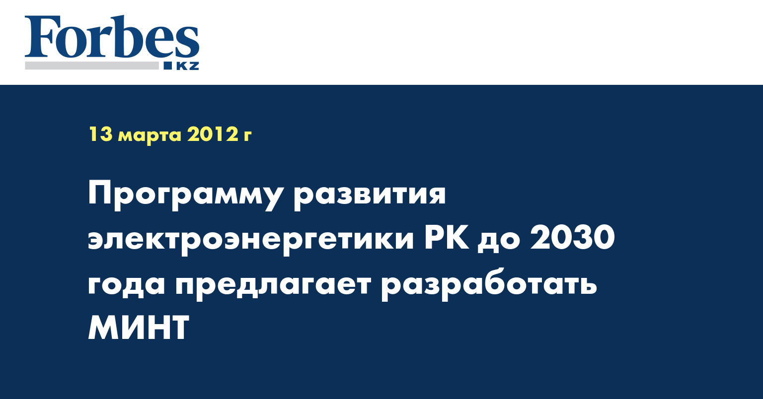 Программу развития электроэнергетической отрасли РК до 2020 года с перспективой до 2030 года предлагает разработать министерство индустрии и новых технологий (МИНТ) РК, передает КазТАГ.