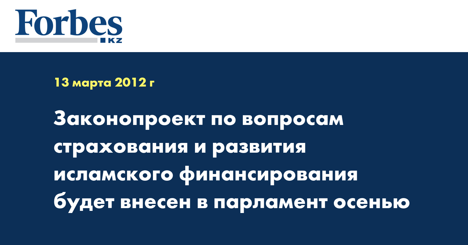 «Как раз сейчас концепция законопроекта по вопросам совершенствования страхования и развития исламских финансов будет внесена в правительство. (…) Мы надеемся, осенью с этим законопроектом зайти в парламент», - сказал он на VII казахстанском финансовом форуме во вторник.
