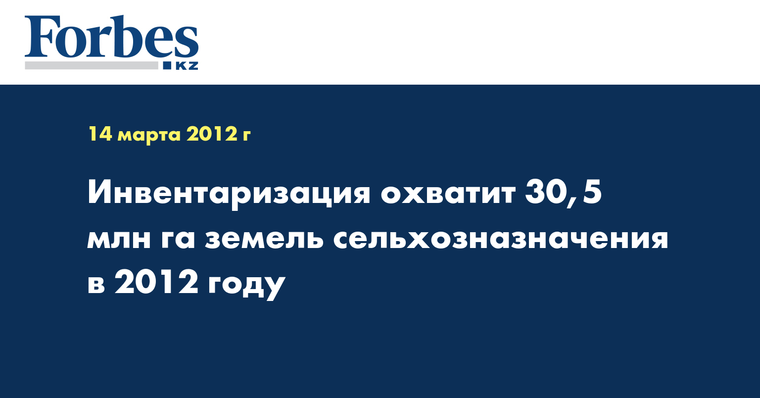Инвентаризация в 2012 году охватит 30,5 миллионов гектаров земель сельскохозяйственного назначения, сообщил глава агентства по земельным ресурсам Кадирхан Отаров.