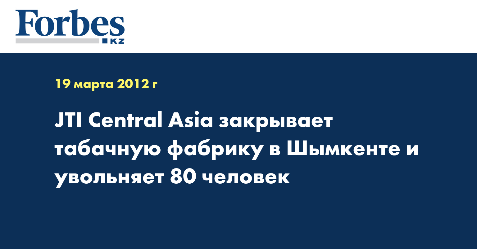 Этот вопрос обсудили в акимате Шымкента. «Акционеры компании JTI Central Asia приняли решение о закрытии фабрики. Оно связано, прежде всего, с сокращением объемов производства и понижением спроса. В связи с этим 80 сотрудников компании теряют рабочие места», - сообщил аким Шымкента Арман Жетписбай на совещании в минувшую пятницу.