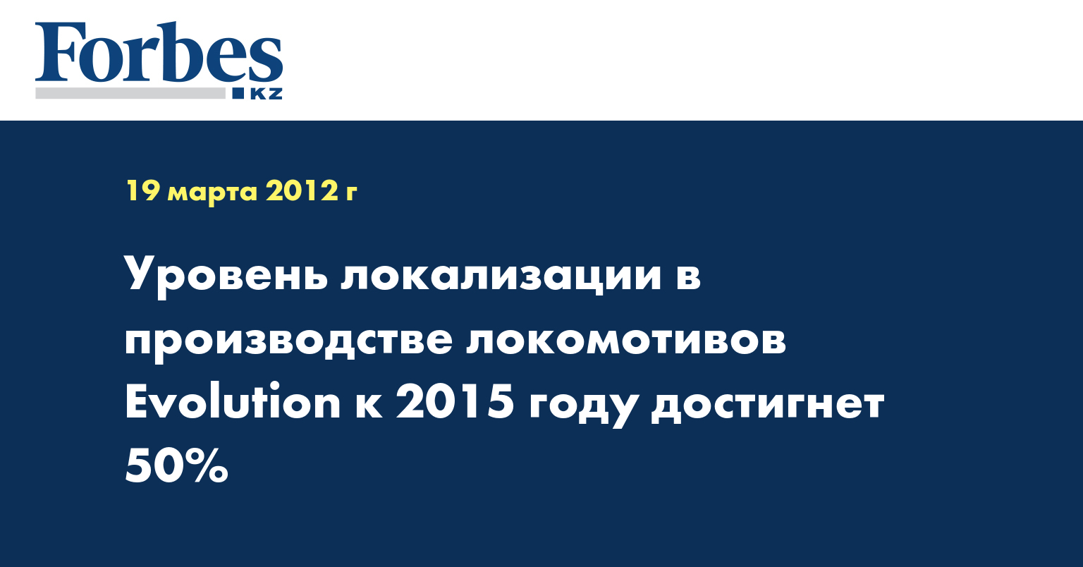 По его словам, к 2015 году уровень локализации в производстве локомотива Evolution достигнет 50%.