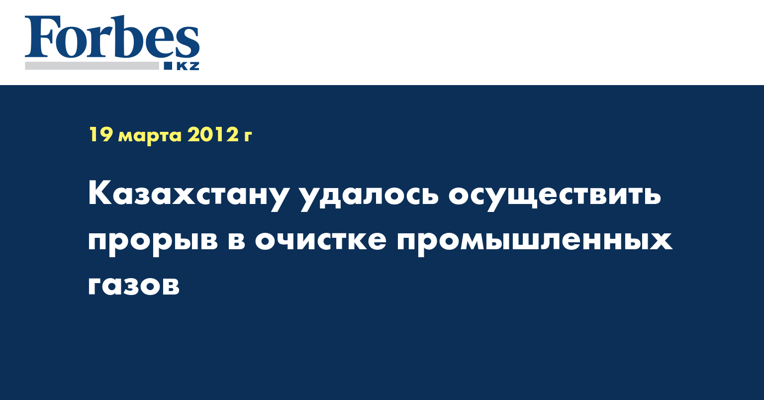 «Десять лет нужно было потратить компании «ABsalut Ecology», чтобы достичь результатов в производстве оригинальной технологии по очистке вредных промышленных газов. За развитием этого инновационного проекта следит президент Казахстана Нурсултан Назарбаев. Проект входит в Государственную программу форсированного индустриально-инновационного развития Казахстана», - отмечается в сообщении фонда.