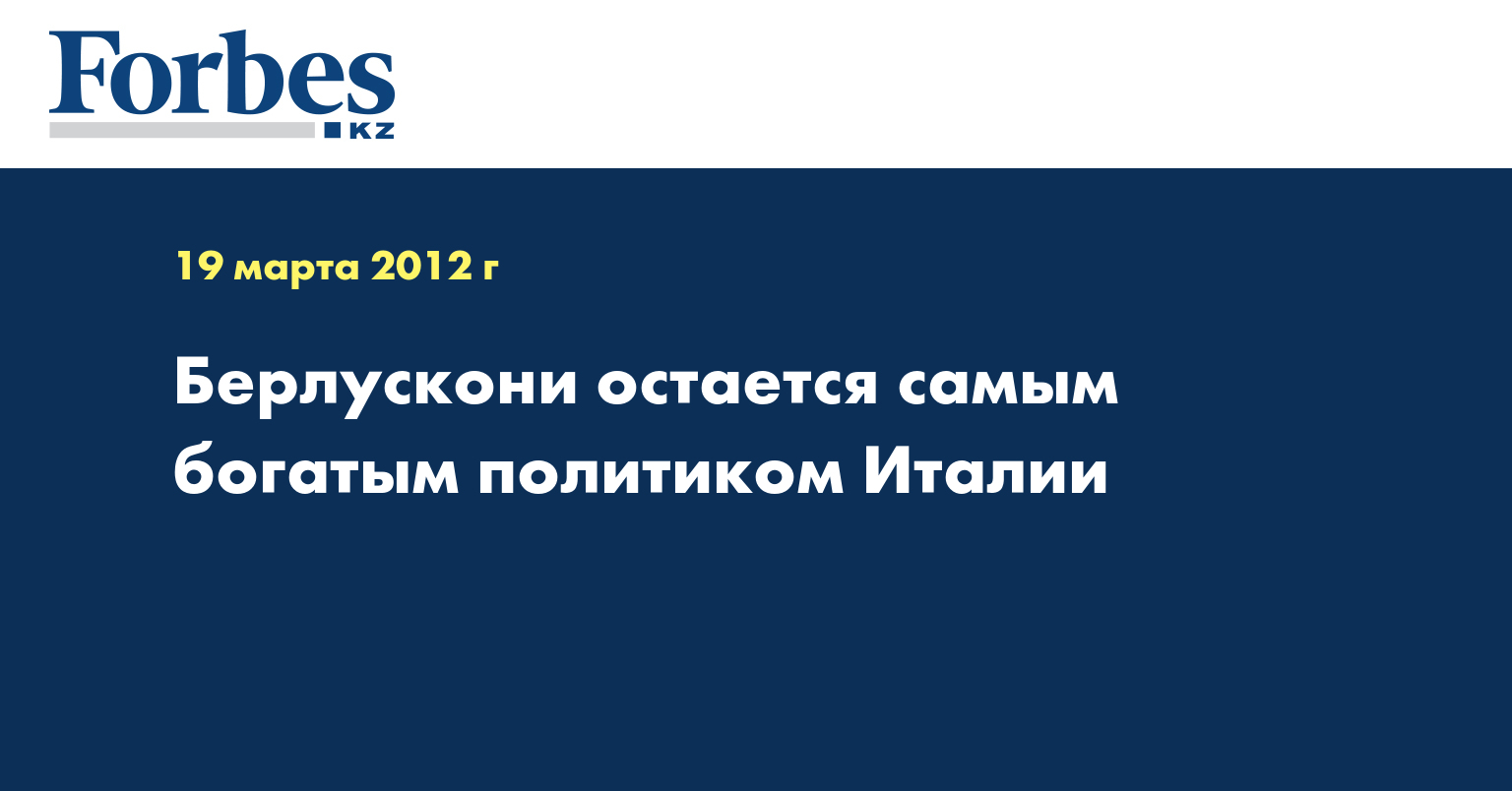 Бывший премьер-министр Италии Сильвио Берлускони остается самым богатым политиком на Апеннинах с доходом более 48 миллионов евро, следует из декларации политика и миллионера, данные которой местные СМИ опубликовали в понедельник, передает ИА Новости-Казахстан.