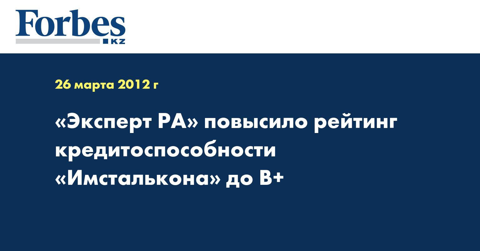 «Прогресс в реструктуризации задолженности компании, а также наличие сформированного портфеля заказов «Имсталькон» на 2012-2013 годы при прочих равных условиях стали основной причиной, почему мы повысили рейтинг компании до уровня В+», – пояснила эксперт по нефинансовому сектору «Эксперт РА Казахстан» Анна Акопьянц.